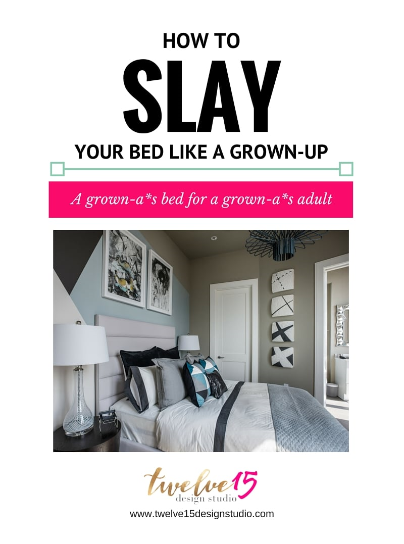 Alright, maybe you’re someone who doesn’t need all the huff + fuss with all the layers, + pillows, + frilly foo-foos on their bed. Really, the moral of the story is: Make Up Your Bed! Your bedroom is supposed to be your sanctuary, but it can also be a war zone. You’ll notice though when your bed (which is typically the largest piece of furniture in your bedroom) is made your room feels less like one, guaranteed. But, we’re grown-a*s adults, remember? Don’t make me check you on your war zone of a bedroom! (Insert angry eyes here)