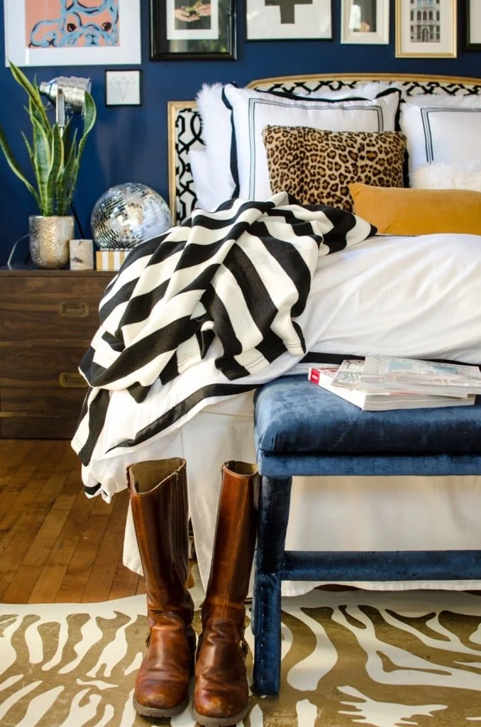 Mmm… so maybe you didn’t go for a crazy pattern or color scheme for your bed linens, no worries! You can always go bold with throw pillows. This is a fantastic way to mix things up by introducing (additional) pattern + texture. Throw pillows are relatively inexpensive + can always be swapped out for a different look.