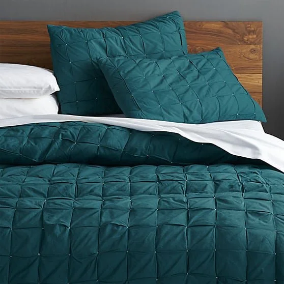 So, regardless of their size label, comforter infills vary in their measurements. Measure your duvet cover + then find an insert that is at least 2 or 3 inches larger than your duvet cover. Think of the duvet cover as a giant pillowcase if you will. This trick helps in making your comforter look cozy + full like the ones you see on display in the department stores. In terms of patterns + colors, most times if you choose a solid quilt then you can opt for a patterned duvet. But on the other hand if you choose a patterned quilt, stick with a solid duvet, or at least one that has a pretty simple pattern to it. I am a fan of mixing + matching patterns + colors, as long as there is a complementary element to them. Some people won’t, but I surely know what looks good! *winks*