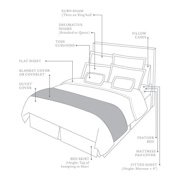 These tend to be used during the warmer months. They are lighter weight + can easily be folded + placed at the foot of the bed. Some people simply throw a duvet or a comforter over their sheets + call it a day, but that can leave your bed looking rather, uninviting, + a bit plain, + we did say that we were going to slay, right? Alright, just checking! So, adding a quilt or coverlet gives the bed layers + a little style, + definitely more comfort. You want a quilt that adds texture, color, or pattern to your bed + compliments your duvet. You can create these layers by spreading your quilt over your sheets + layer your duvet on top OR you can fold the quilt into thirds, laying it atop of the foot of your duvet.