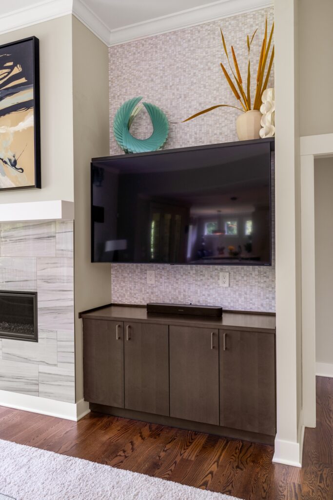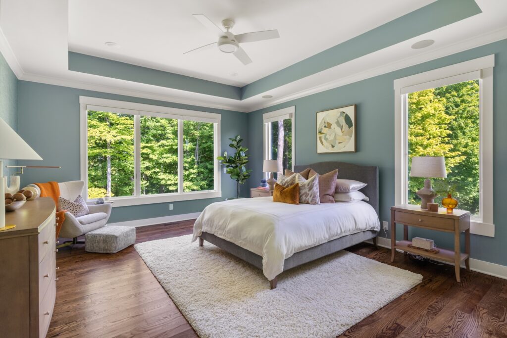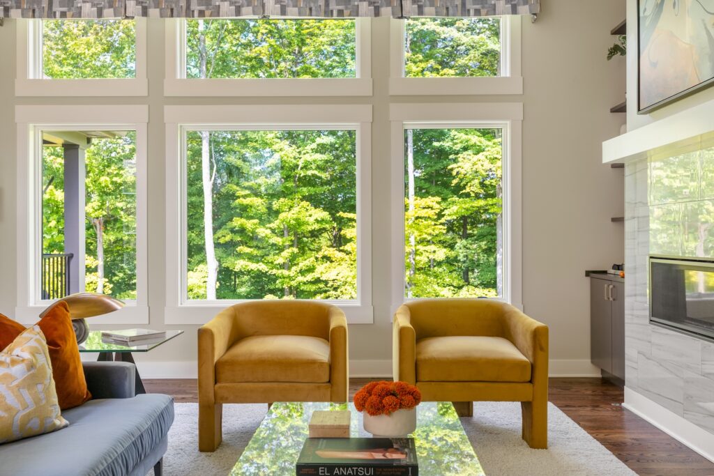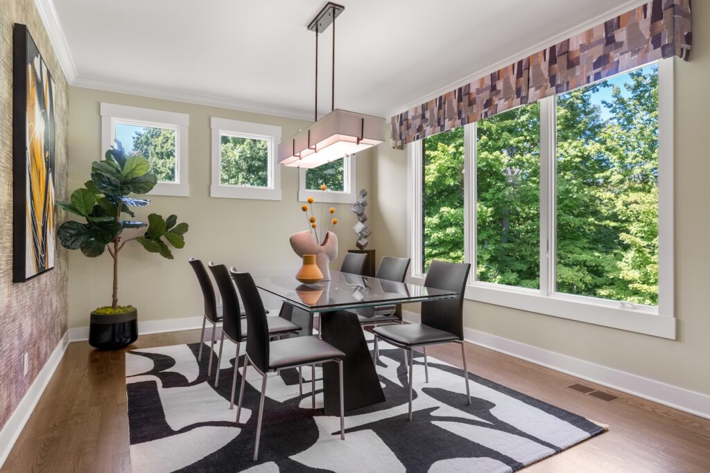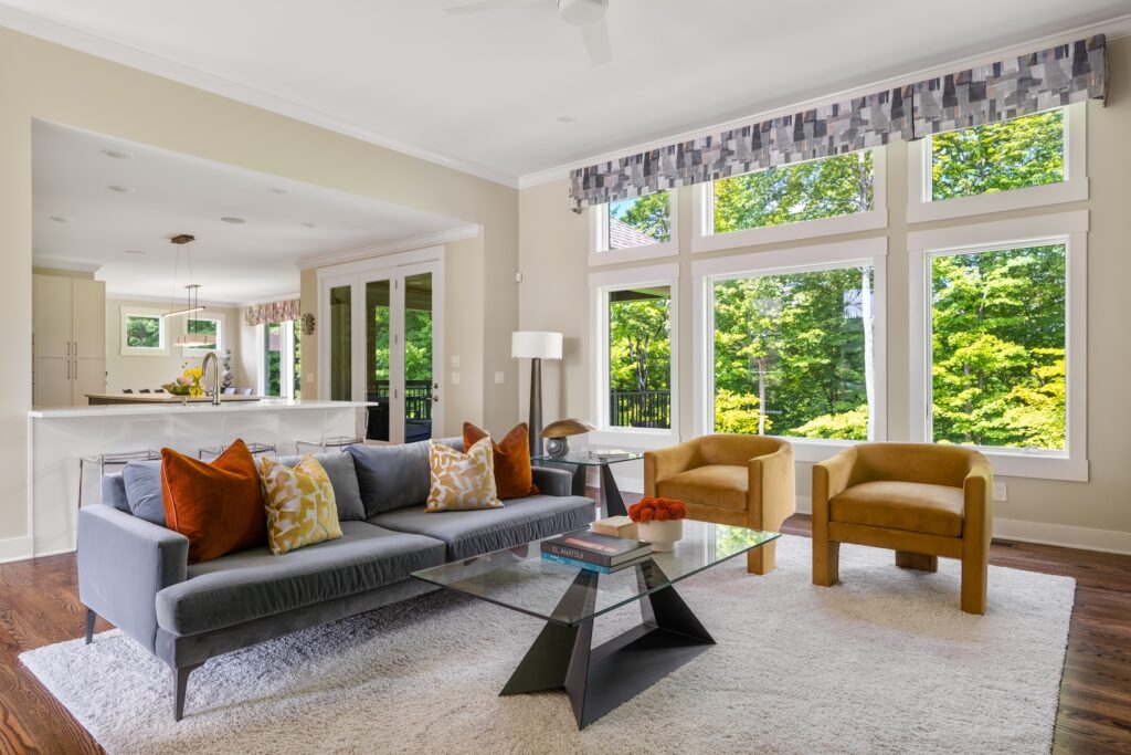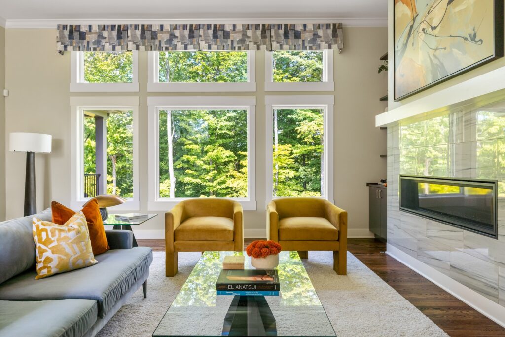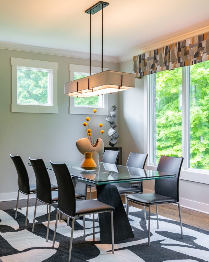 Project Brief: Our design intent was to transform a blank-slate new construction home into a Sophisticated, Elegant, and Relaxing environment, styled after a luxury hotel lobby. The aesthetic, defined as Artful Elegance, was achieved by utilizing bold accent colors (blues and golds) against neutral walls, prioritizing comfortable furnishings, and integrating unique, non-generic pieces of art. A bold and vibrant art curation was central to add character. Functional updates included custom valances throughout to maximize natural light and views, and incorporating solutions for display and storage in the Great Room. The design successfully integrated the clients’ existing furniture, with a few new pieces, to achieve a tailored, high-end finish.