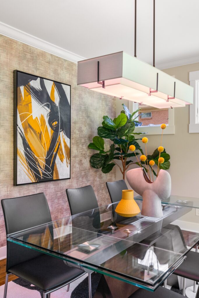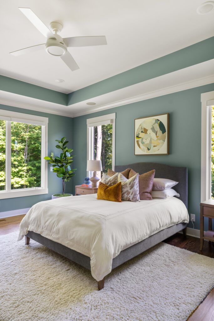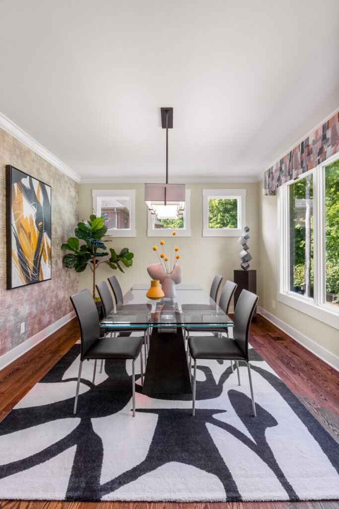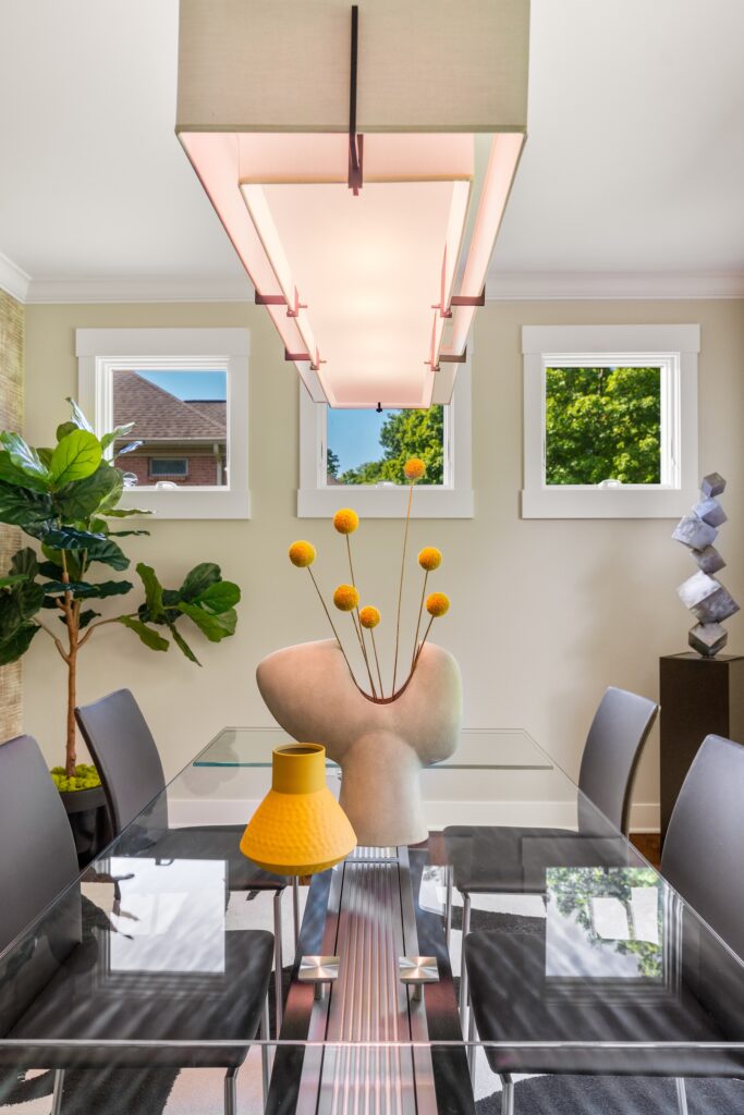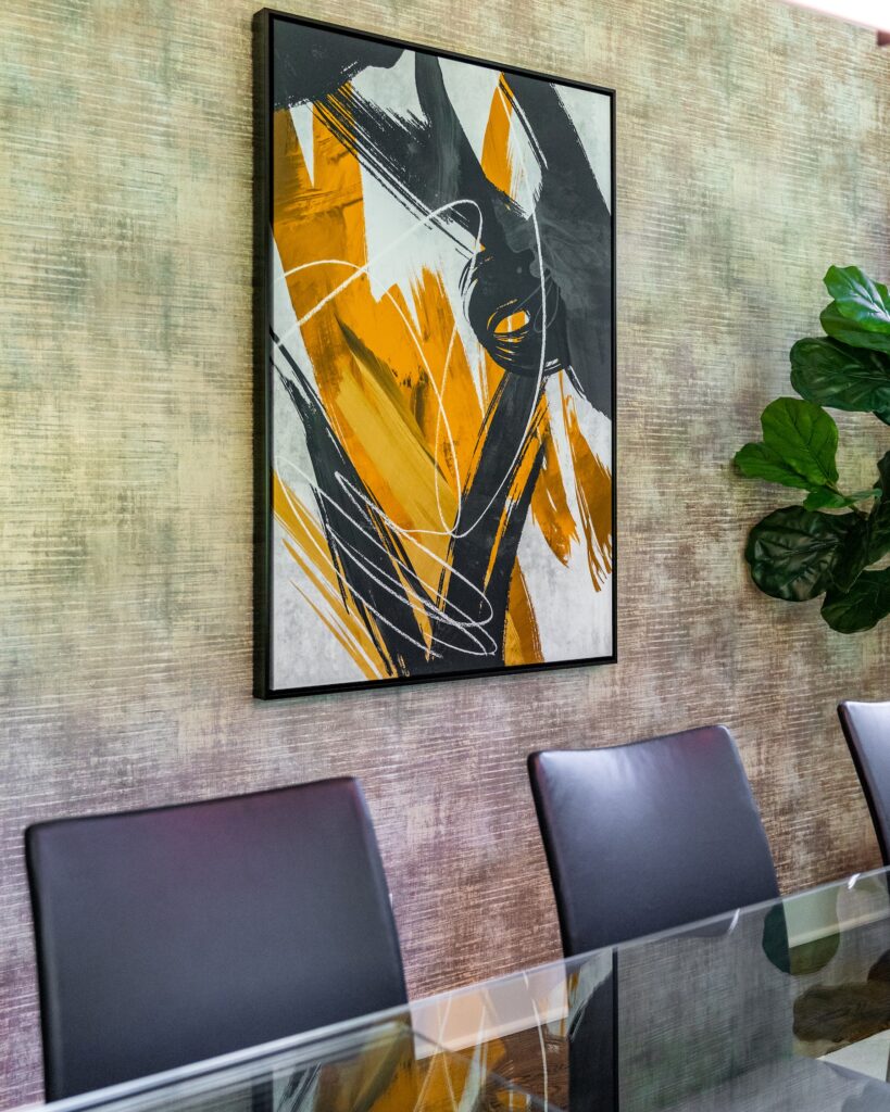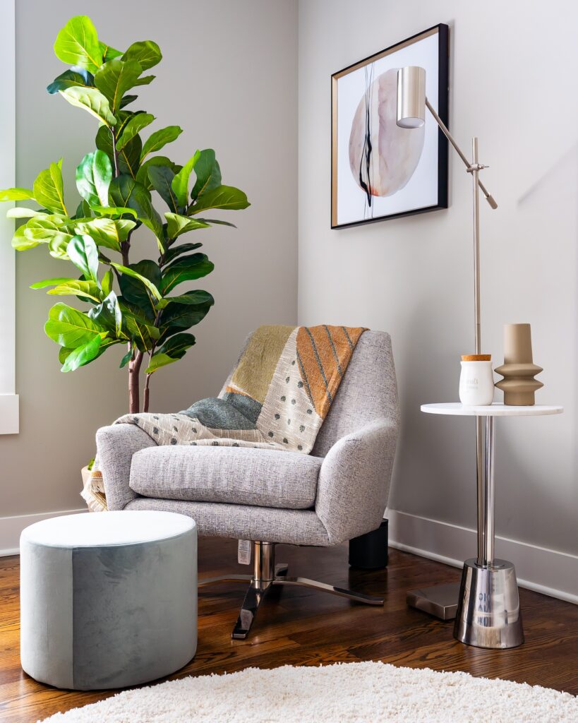Project Brief: Our design intent was to transform a blank-slate new construction home into a Sophisticated, Elegant, and Relaxing environment, styled after a luxury hotel lobby. The aesthetic, defined as Artful Elegance, was achieved by utilizing bold accent colors (blues and golds) against neutral walls, prioritizing comfortable furnishings, and integrating unique, non-generic pieces of art. A bold and vibrant art curation was central to add character. Functional updates included custom valances throughout to maximize natural light and views, and incorporating solutions for display and storage in the Great Room. The design successfully integrated the clients’ existing furniture, with a few new pieces, to achieve a tailored, high-end finish.
